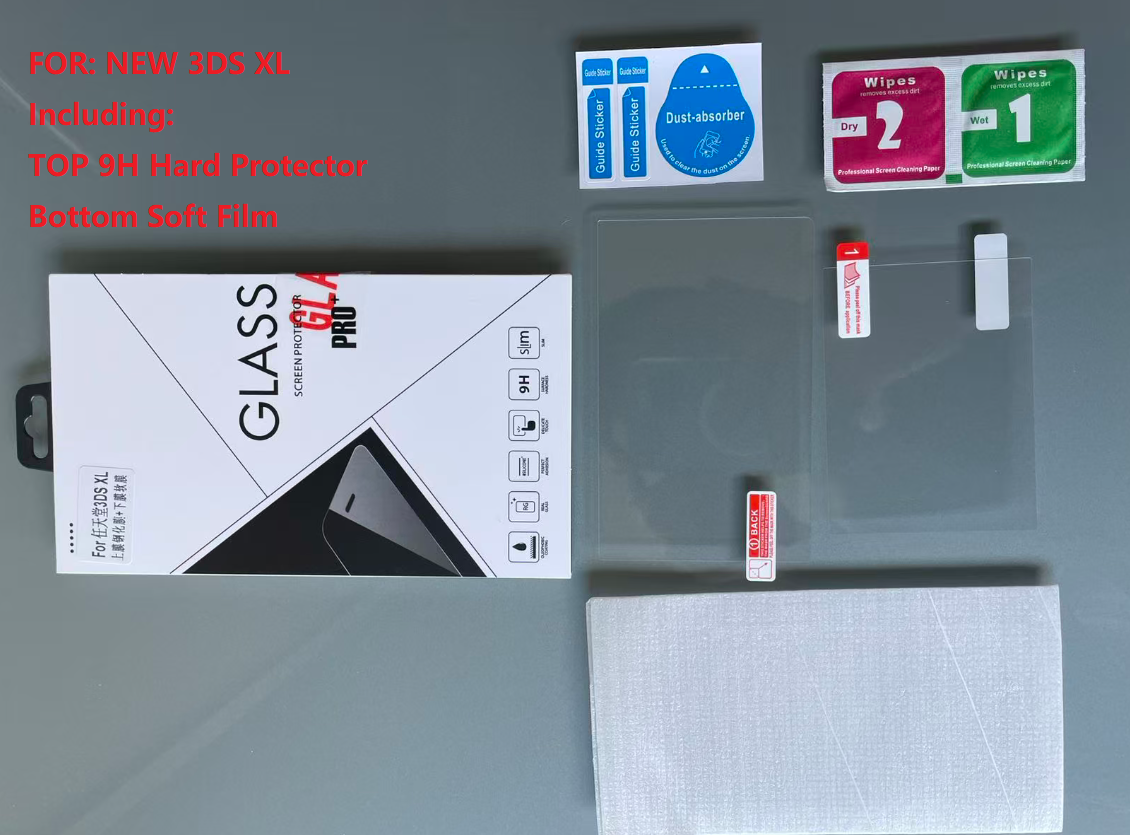 Please be noticed: 1 NEW 3DS and NEW 3DS XL/LL are different 2 Two pieces Screen protecor included One for top 9H Glass, One for bottom soft film